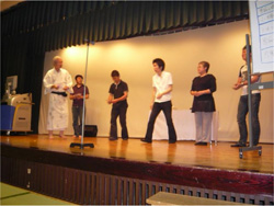 しばらくして行なわれた余興の時間では、9チームがそれぞれ工夫を凝らした出し物をステージ上で披露し、どのチームも爆笑をさそっていました。